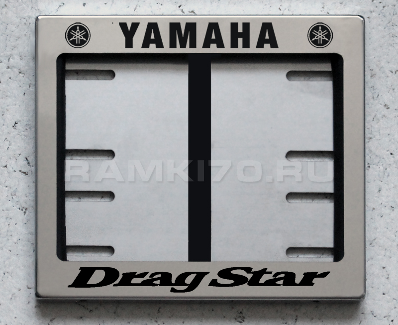 Антивандальная моторамка по новому ГОСТу из нержавеющей стали с двумя надписями Yamaha DragStar, сделанными лазерной гравировкой, для уменьшенного номера (размер номера 190 х 145 мм) мотоцикла