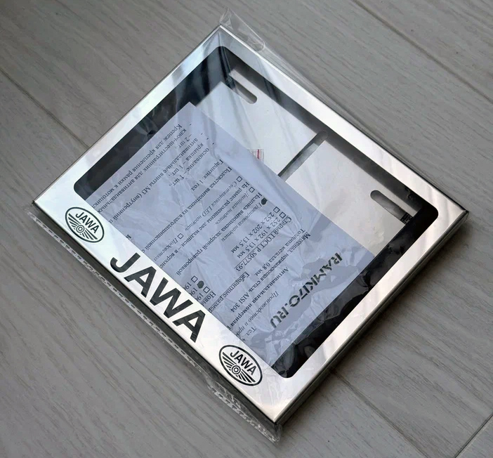 Вы можете купить Рамку номера мотоцикла JAWA новый ГОСТ из нержавеющей стали с доставкой в любую точку России, СНГ и дальнего зарубежья в интернет-магазине "Рамки70". Подробные технические характеристики и фотографии помогут определиться с выбором. При необходимости курьер привезет Рамку номера мотоцикла JAWA новый ГОСТ из нержавеющей стали к вам домой или в офис
