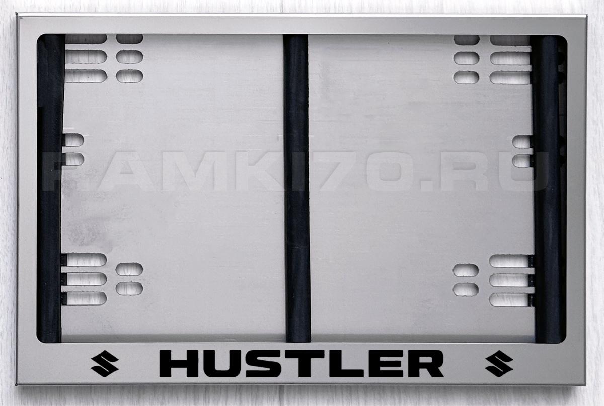 Номерная рамка из нержавеющей стали с гравировкой Hustler для заднего номера автомобиля Сузуки Хастлер по новому ГОСТу