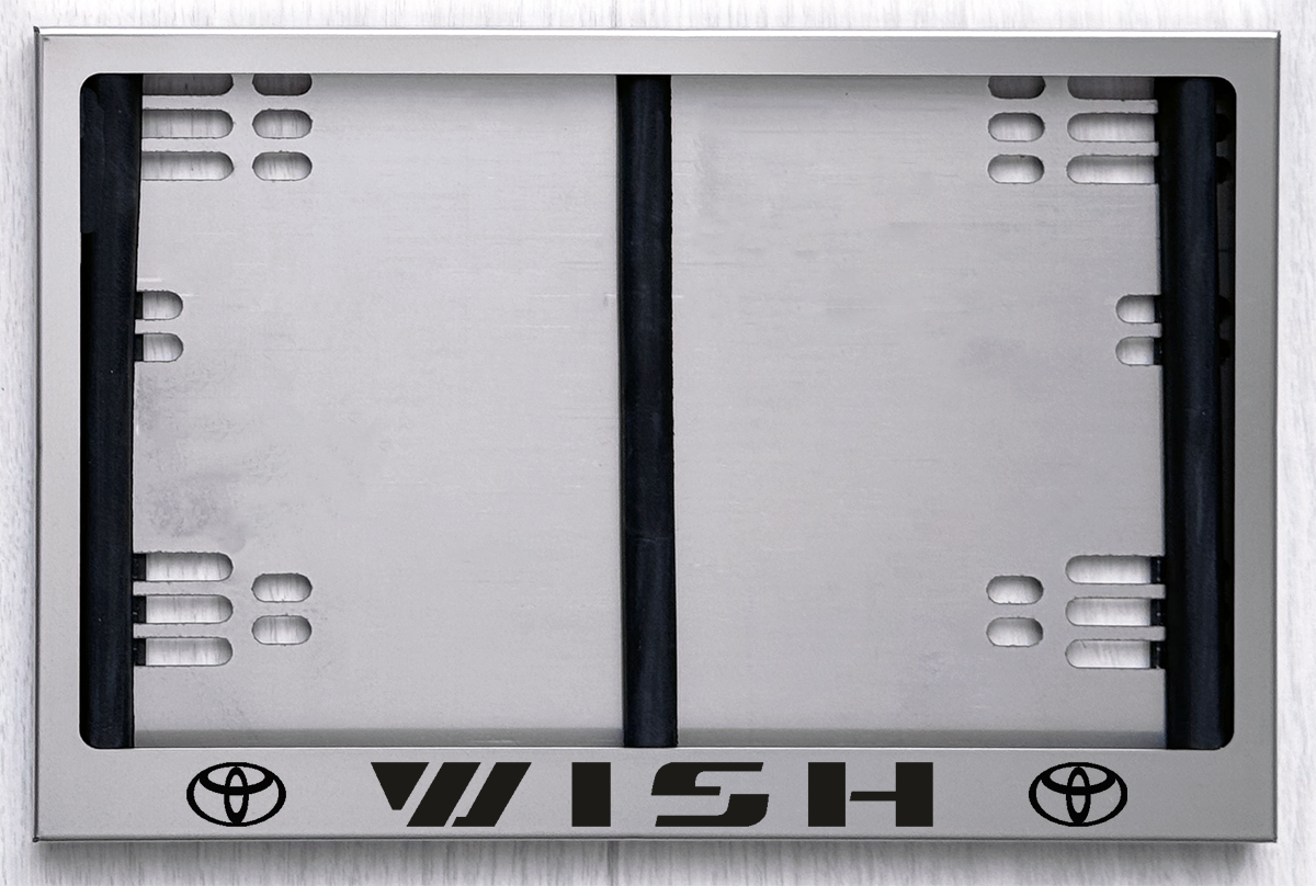 Номерная рамка из нержавеющей стали с гравировкой WISH для заднего номера автомобиля Тойота Виш по новому ГОСТу
